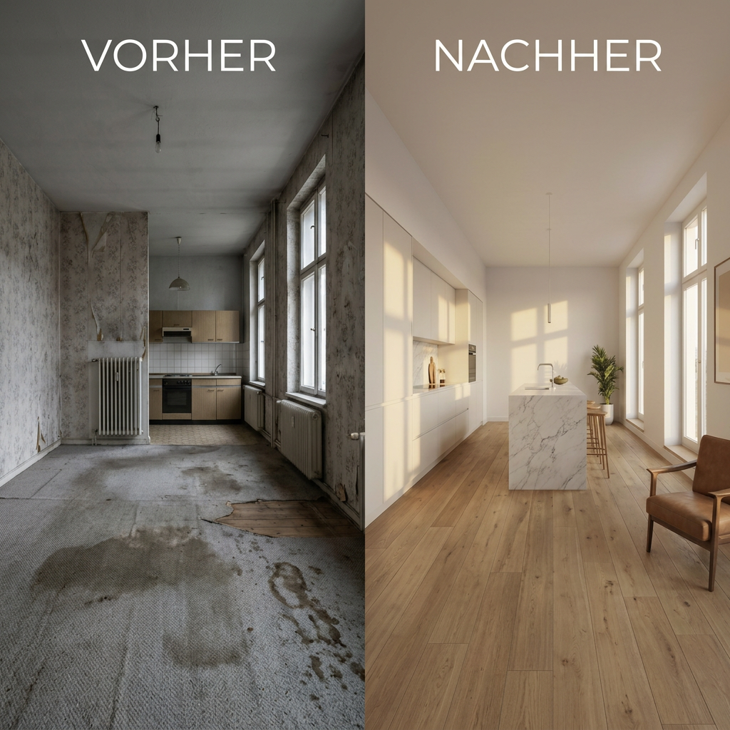 In vier einfachen Schritten verwandeln wir problembehaftete Immobilien in attraktiven Wohnraum.